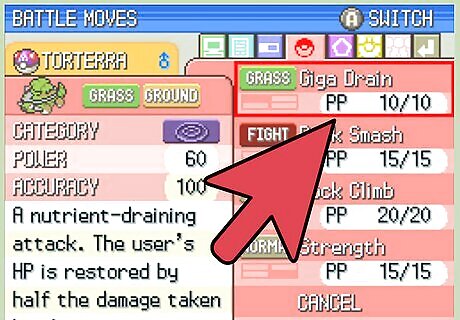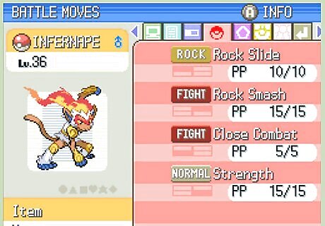 Know that having solid move sets, which are a Pokémon's four moves, are as important as choosing balanced Pokémon. While having the right types of Pokémon is essential to survive against any type of Pokémon you face, you won't be able to succeed offensively without the right move set. Just like you need to balance your Pokémon types, you need to balance the types of moves you have to fight well against anyone. You want to balance offensive and defensive moves in every Pokémon. STAB moves give you a 50% attack bonus if the type of move (ie. a Fire Move, like Ember) matches the Pokémon's type (ie. Infernape, a Fire Pokémon, using Ember). When possible, teach Pokémon moves that match their type.