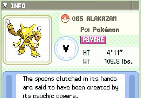 Have a Psychic/Dark type Pokémon. These rare but powerful Pokémon are invaluable to your arsenal, especially a Pokémon that can learn both types of moves. You will be good against other Psychics, Bugs, Poison, and other Dark Pokémon. More importantly, these Pokémon usually have a high Sp. Attack and a lot of special moves. Metagross, Alakazam, Espeon, Gallade and Hypno are all Psychic or Dark types. Get moves like Psychic, Night Slash, Bite and Psycho Cut.