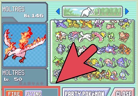 Find a Fire-type Pokémon. Since there are unfortunately not many Fire-types in Platinum, snag a Ponyta early in the game that you can level up to the quick, powerful Rapidash. If you chose Chimchar to start, he will be able to get you out of just about every mess needing Fire Pokémon, including almost every gym. You will also be super effective against Grass, Ice, Bug, Rock and Steel types. Legendary Bird Moltres is a great choice as well if you can get your hands on one. You can get an Eevee in Hearthome City in the house above the Pokémon Center. This Pokémon can evolve into a Fire, Water, Electric, Psychic, Dark, Grass, or Ice type if you have the requirements completed. Learn moves like Flare Blitz, Fire Blast, and Sunny Day. Fire Pokémon are not strictly necessary—a good Fighting Pokémon can often compensate for a missing Fire type.