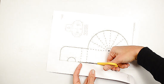 Prepare the template. Cut along the solid outside lines from the paper. Also, cut out the bottom white circle. Tape both sides together.