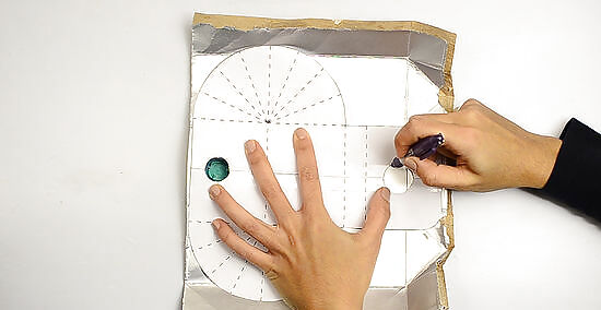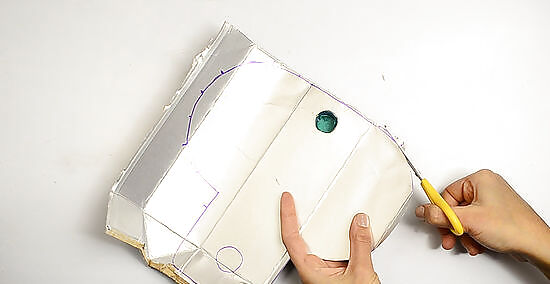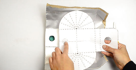 Cut out the traced outlining from the carton. Carefully cut out the bottom circle.