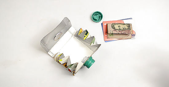 Add money and cards to your new recycled wallet.