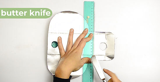 Score along the dotted lines. You may use a butter knife, craft knife, or scissors blade with a ruler to score them.