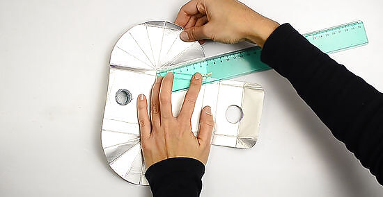 Trace the template on the carton. Using a ballpoint pen or pencil, trace the outside lining and bottom circle. Use firm pressure to trace the dotted lines onto the carton. Using the pressure helps to mark the lines where you're going to fold.