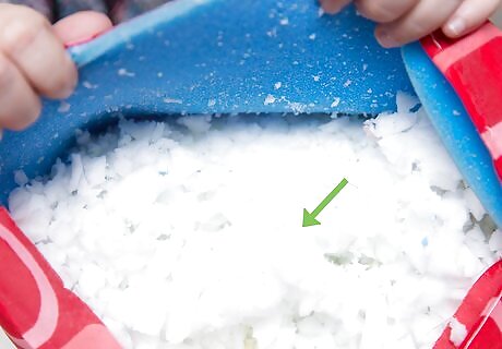 Stuff an old pillowcase with a soft, warm material. The most ideal options are blankets or feathers. Make sure they are not dirty or touched by another animal.