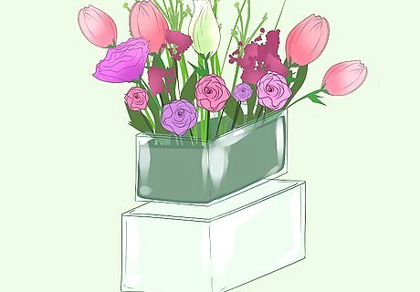 Finalize your arrangement plan. Once you have a sense of what flowers you want and how many you will need, decide if you want to buy the flowers yourself and arrangement them or entrust this to a florist. Depending on what florist you choose, having a florist make the arrangements may not be much more expensive than buying all the flowers individually, and it could save you stress if you are making many separate arrangements. Once you have decided, pay for the flowers and arrange to pick them up the morning of the event.