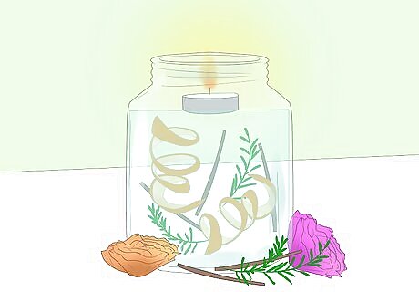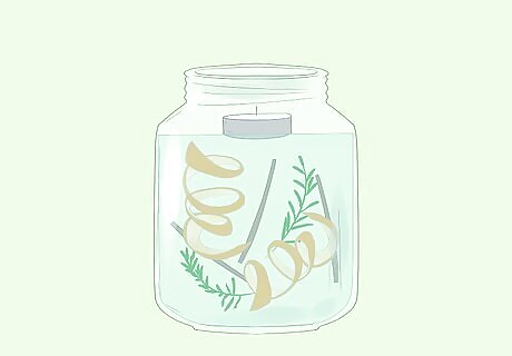 Add a floating candle to the top of the water. Once you have finished adding the orange rind and other decorative elements to the water, place a small floating candle on top of the water. You can get floating candles at standard department stores or at art supply stores.
