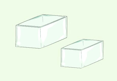 Find two vases of equal shape. One beautiful way to integrate citrus slices into your centerpiece is to line the inside of a clear vase with citrus rounds and place another, smaller clear vase that holds a flower arrangement inside the first vase. To begin making this arrangement, find two clear flower vases, making sure one of which is small enough to fit inside the other. Make sure that the vases are a similar shape but have different diameters. For instance, you can use two cube shaped vases, or two cylindrical vases. The vases should be of similar or equal height, but one vase's diameter should be about one inch (2.54 cm) smaller than the other vase's diameter so it can be comfortably placed within the larger vase.