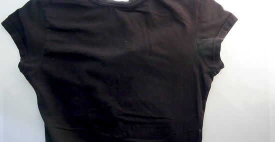 Lay out a black shirt on a large plastic garbage bag. Line the inside of the shirt with plastic, as well. Any plastic sheeting or large plastic surface will work. You simply need something that is capable of preventing bleach and paint from dripping onto the floor or bleeding through the shirt. Placing plastic inside the shirt prevents the bleach from bleeding through and staining the other side. If possible, use a plain black cotton shirt. Cotton and similarly absorbent materials work best for this project. You must also use a black shirt, rather than a white or color shirt.