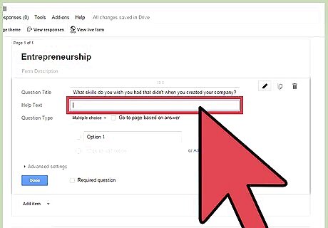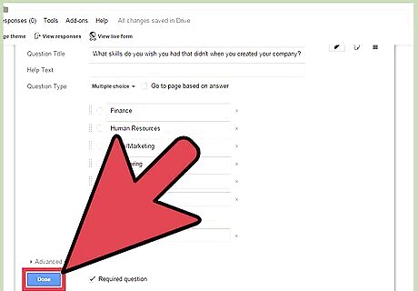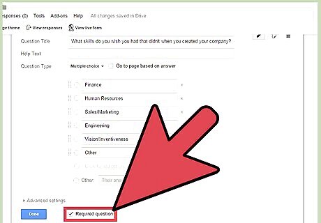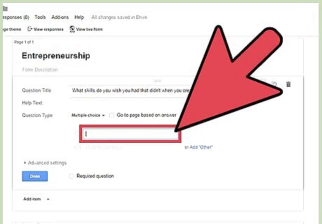 Adjust the answer options. Depending on your Question Type, the next field item will change. Put the acceptable answers in the provided fields. For example, if you chose Multiple Choice, you have to indicate the choices to be given to your respondents. Each Question Type has additional "Advanced settings" you can change as well.