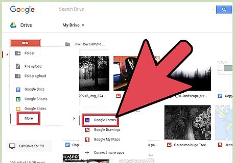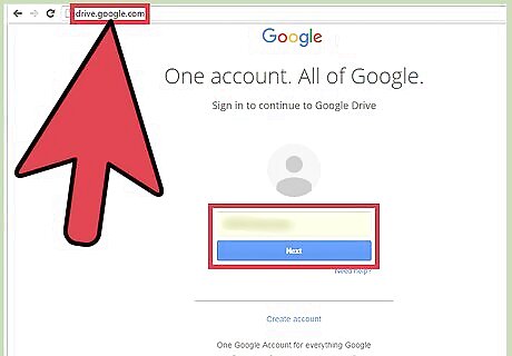 Log into the Google Drive website. Visit Google Drive (drive.google.com) from any web browser. Sign in with your Gmail email address and password. This is your one Google ID for all of Google’s services, including Google Drive. Upon logging in, you will be brought to the main directory. All your documents, spreadsheets, slides, forms, and others created in Google are here. It is not currently possible to create a Google Form from the Drive mobile app. If you don't have a Google account, you can create one for free from the login page. See How to Make a Google Account for detailed instructions on creating a free account.