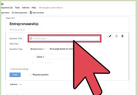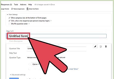 Name the survey. Click the “Untitled form” text and edit the name of your survey. You can also put an optional description underneath the title to provide a background, objectives, or instructions to your respondents.