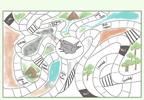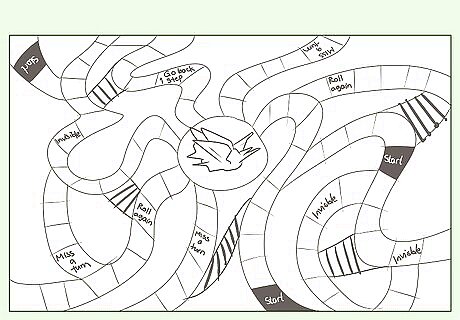 Draw the pathways. Using a pencil, draw a pathway that goes from the edges of your map and spirals around into the center. Because the point of the game isn't to reach the end of the pathway, make your pathway circular so that there is no start or end and players can continue moving around as much as possible.