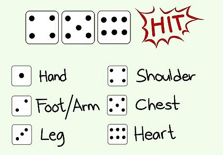 Know when you're able to attack. Once a player rolls, if they're within 3 spaces of another player, they can launch an attack against them. However, the attacks aren't always successful. To attack, roll one of the dice - if the number rolled is higher than 3, you hit. If you hit, roll the dice again to indicate the damage. The damage chart is as follows: 1: Hand 2: Foot 2: Arm 3: Leg 4: Shoulder 5: Chest 6: Heart