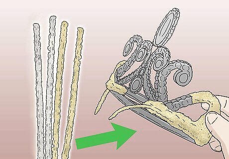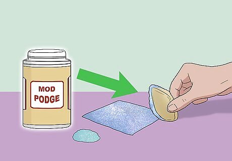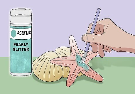 Add some glitter, if desired, then let the shells dry. Paint your shells decoupage glue (ie: Mod Podge), then sprinkle extra-fine scrapbooking glitter over them. Tap off any excess glitter. For something more subtle, outline the shells' edges, ridges, and grooves with liquid glue, then add the glitter. Use a glitter color that matches the shell to prevent any clashing. Iridescent is also a good option. You don't have to add glitter to all of your shells. You can leave some un-glittered.