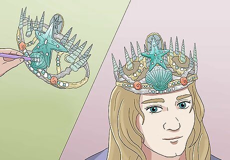 Design your crown. Do you want a large, fancy crown or a simple tiara? Do you want it to look natural or fantasy-like? Take a look at the different types of shells, and see how they could be put together to form a crown. For example, pointy turret shells that look like unicorn horns would make great points for your crown. Starfish, sand dollars, or scalloped shells could make pretty centerpieces.