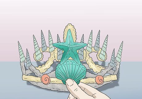 Create more layers. At this point, the base of your crown is done. You can make it look more interesting by adding more layers. For example, you could glue some clam or snail shells along the base of your crown. A smaller clam shell to either side of your focal point would also look pretty. If you used a sand dollar as your focal point, consider gluing down a tiny starfish in the middle.
