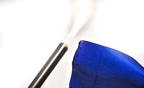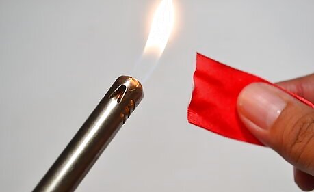 Seal the ends of the ribbon with a flame. Light a candle or ignite a lighter. Hold the cut end of the ribbon close to the flame for a few seconds, or until the cut edge melts. Repeat for the other side.