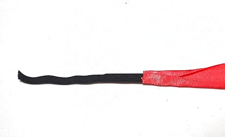 Cut a shorter, narrower piece of Velcro. You will need one 15-inch (38.1-centimeter) piece of ¾-inch (1.91-centimeter) wide Velcro. Make sure that you are only using the hook part, and not the fuzzy part. For something softer, you could use velvet ribbon instead. It will offer some grip, but not as much. Black is the best choice because it doesn't show dirt as much.