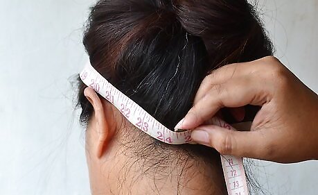 Measure your head, then subtract 4 inches (10.16 centimeters). Wrap a measuring tape around your head like a headband: under the back of your head, up the sides, and over the top of your head. Record your measurement, then subtract 4 inches (10.16 centimeters). This is your new measurement If you don't have a measuring tape, you can use some ribbon or string instead, then use a ruler to subtract 4 inches (10.16 centimeters).