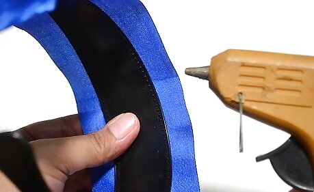 Fold and glue the ends of the ribbon. Cover one end of your headband with hot glue. Quickly fold the excess ribbon over the edge, and press it into the glue. Repeat this step for the other end of the headband.