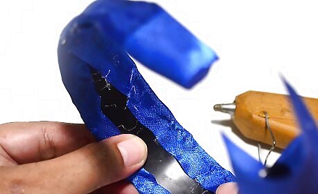 Cut a short piece of elastic. You will need one 6-inch (15.24-centimeter) piece of ⅜-inch (0.95-centimeter) wide elastic. For a neater finish, match the elastic color to the Velcro color. Set the elastic aside for later.