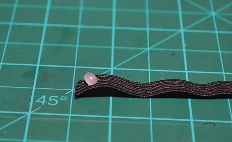 Glue the side edges of the ribbon down onto the elastic. Make a small drop of hot glue on the ribbon to the left of the elastic. Fold the edge down onto the elastic and press it into place. Repeat for the right side.