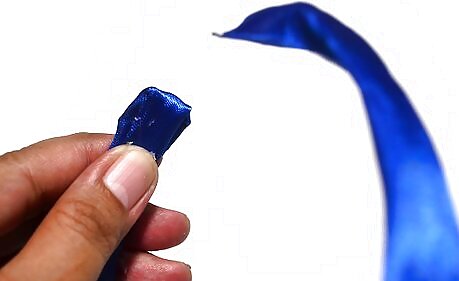 Seal the ends of your ribbon. Light a candle or a lighter. Hold the end of your ribbon over the flame until the cut end melts and hardens. Repeat this step for the other end of the ribbon.