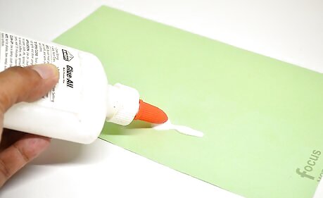 Spread glue on the paper. Lay the paper facedown. Spread glue around the outside edge of the paper, forming a border. Any glue can be used to fasten the parts of the envelope, but a stronger adhesive, such as rubber cement, works best.