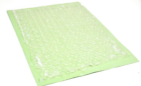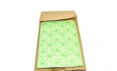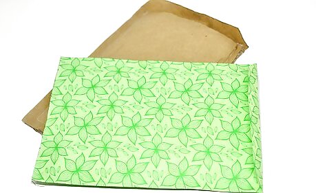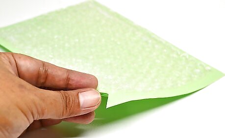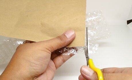 Trim bubble wrap. The bubble wrap needs to fit inside the envelope. For the 7.5 by 10.5 inch envelope, cut the bubble wrap down to 6 by 9 inches (15.24 by 22.86 cm). By making the bubble wrap shorter, you can glue the ends of the cardstock together to prevent the envelope from opening. Instead of bubble wrap, you may also use packing foam sheets. Cut out a piece, fold it in half, tape up the sides, and glue it between the cardstock and paper.