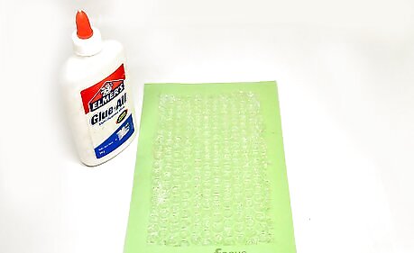 Lay bubble wrap over the paper. Choose one piece of bubble wrap and line it up with the top edge of the paper. Keep the bubble side facedown and set it in the glue.