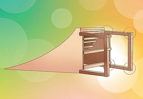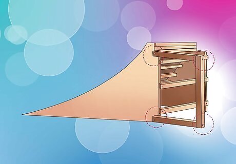 Place a 2x4 (50x100 mm) about every 10 inches (25 cm) along the transition (curved side) of the ramp between the 2 sides and screw the ends into the plywood. The top board will be flush with the top edges of the sides and perpendicular to the ground. The bottom board will be parallel to the ground. The remaining boards will be angled so they are perpendicular to the curve of the transition.