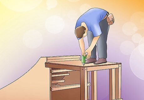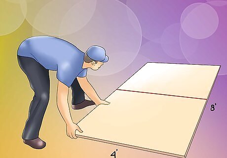 Lay a 4-foot by 8-foot (1200 by 2400 mm) piece of 3/4-inch (18 mm) plywood flat on the work surface, drawing a line down the middle. You should have 4 feet (120 cm) on each side of the line.