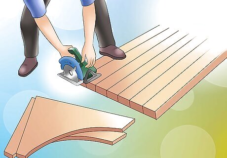 Cut a piece of 4-foot by 8-foot (1200 by 2400 mm) 3/8-inch (9 mm) plywood down the middle so you have 2 sheets of plywood 2 feet (600 mm) wide.