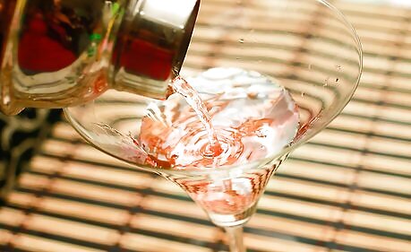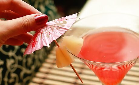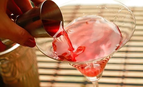 Pour the pineapple and cranberry juice into the cocktail glass.