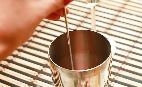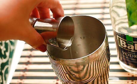 Measure and pour the vodka, peach schnapps, and coconut rum into the mixing glass.