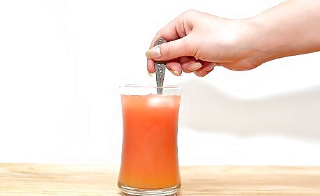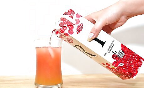 Pour the grapefruit, peach nectar, and cranberry juice into the glass.