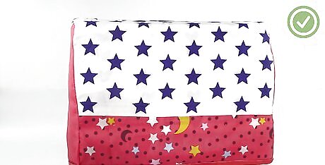 Tuck the lining into the cover, with the back sides touching. Turn the cover right-side-out so that you can't see the seams. Keep the lining turned inside-out so that you can see the seams. Tuck the lining into the cover, making sure that the edges and seams align. Pin along the bottom edge or sew a basting stitch using a ⁄4 in (0.64 cm) seam allowance.