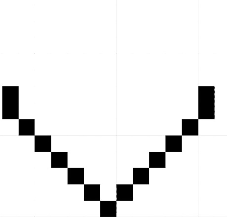 Put pixels diagonally up from the bottom point of the heart, going outwards. It should go to the side and up one square each time. Both sides should be the same length. Do six up on each side, including the bottom point.