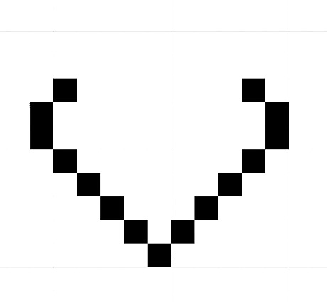 Finish the outline of your heart. Close the outline of the image by adding two pixels diagonally down from the two top pixels just added. Close the gap by adding a pixel diagonally underneath the two pixels.