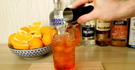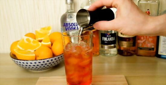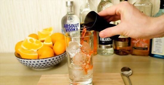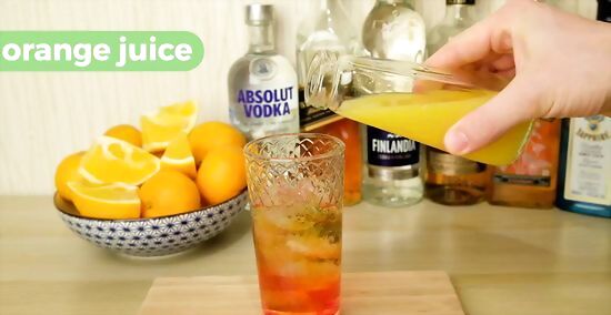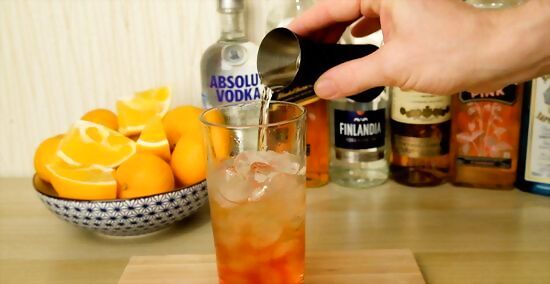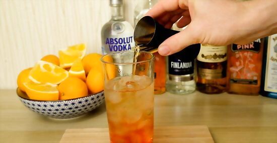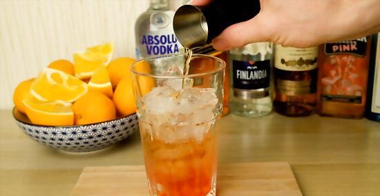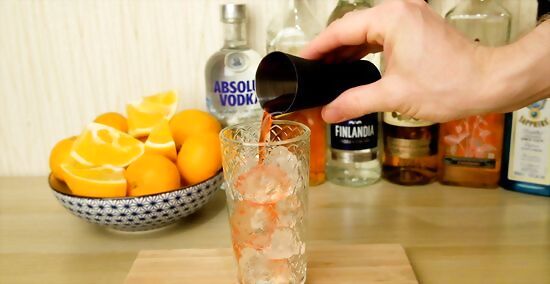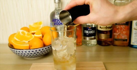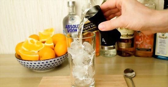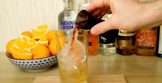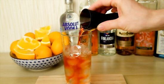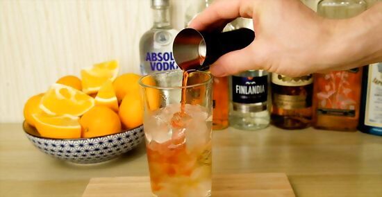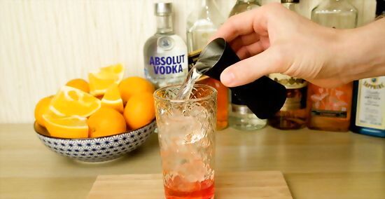Pour ½ ounce of Southern Comfort into the highball glass.