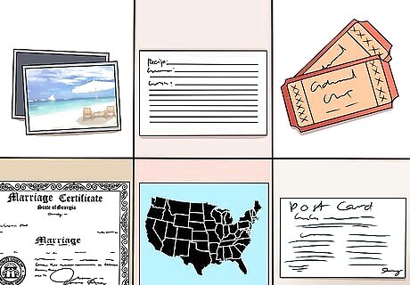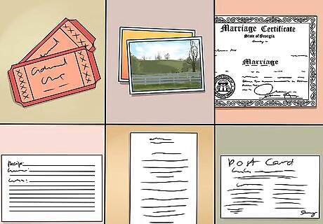 Gather the memorabilia that you want to put inside the Smash Book. This could be a variety of things: Ticket stubs Maps Photographs Letters Articles Poems Post cards