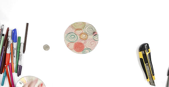Decorate the circles with crayons, markers, or colored pencils. You can create whatever pattern you want, but keep in mind that these circles will spin. Spirals work much better compared to full pictures and illustrations. You can make both circles identical, or you can give them completely different patterns. You only need to design 1 side of each circle. Leave the other side blank. If you made a cardboard circle, leave it blank; it will go between the printer paper circles.
