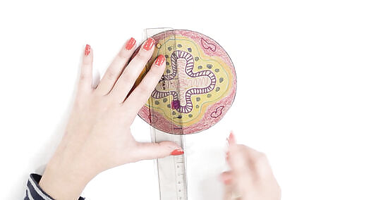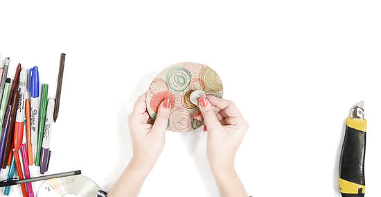Cut a coin-wide slit into the middle of the circle. Choose a small to medium-sized coin that's about ⁄2 to 1 inch (1.3 to 2.5 cm) wide, and place it against the back of your circle. Make a mark to either side of the coin so that you know how wide to make the slit. Pull the coin away, then cut a slit between these marks. A craft blade will work the best, but make sure that you work on top of a cutting mat. You can use scissors as well. If you are a child, ask an adult to help you with this step. The width of the slit will depend on how wide your coin is. It needs to be the same width as the coin.