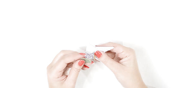 Crease the paper diagonally to make an X. If you need to, re-fold the top-right corner to the bottom-left corner again, and sharpen the crease. Unfold the paper, then fold the top-left corner to the bottom-right corner. Sharpen the crease as well, then unfold the paper. You should have an X-shaped crease in the middle. Sharpen the creases by running your fingernail back and forth across the folded edge.