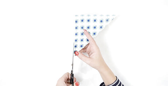 Cut a sheet of colored printer paper into a square. Take a sheet of colored printer paper. Fold the top-right corner down so that the right short edge is aligned with the bottom long edge. Cut the excess paper to the left off so that you get a triangle, then unfold the paper. You can buy packs of colored printer paper from an office-supply store. Print service shops may also sell these sheets individually. Don't use cardstock. Although pretty, it is too thick. You can use patterned scrapbooking paper, as long as it is the same weight and thickness as printer paper. Avoid origami paper. It sounds like a good idea, but it will end up too small. You can use plain white paper. If you want to decorate it with your own pattern, wait until after you have finished making the fidget spinner.