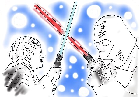 Come up with a plot. Start with the main idea—the main conflict of the movie. Next, think of some things that could happen along the way. Characters that could be introduced. New plans and schemes that people are coming up with. And remember to throw in a few battles here and there. Focus on a theme of your own. You might want to make it really original, like the Great Sith War or the New Republic. You can also visit many different places for different planets, or just make one in the setting. A Jedi could be walking around the neighborhood then attacked by two Sith. Or, you could make the story more complicated by putting it before or after the movies, or even in between.