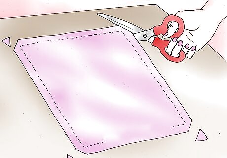 Clip the corners of the pillow before turning it right-side out. Make sure you don't cut through the seam. Trimming the corners will make them sharp instead of rounded when the pillow is right-side out.