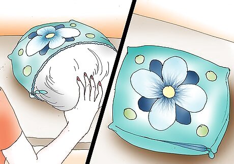 Cut 2 pieces of fabric that each measure about 15 -20 inches square. You can make the squares smaller or larger if you'd prefer. For a more interesting decorative throw pillow, use 2 different fabrics. You can opt for 1 piece of silk and 1 piece of velvet or 2 pieces of cotton fabric in contrasting colors.
