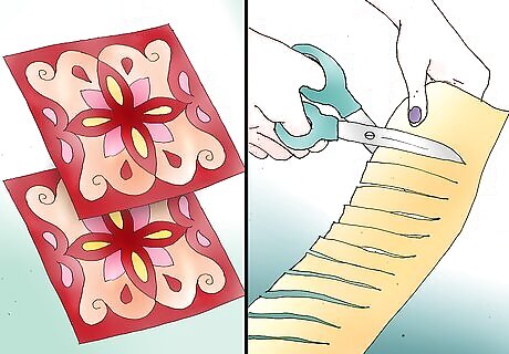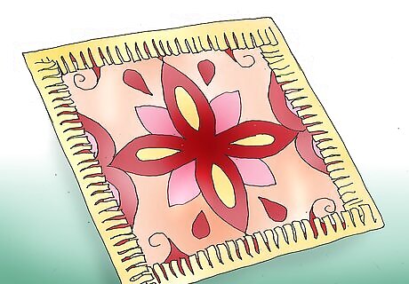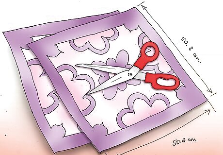 Cut 2 squares of fabric that each measure between 18 to 25 inches (45.72 to 63.5 cm). Cut a length of fringe that measures 4 times the width of the fabric.
